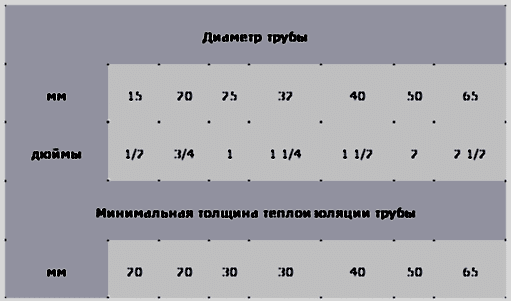 Чем больше труба или чем тоньше теплоизоляция, тем больше необходима удельная мощность кабеля (Вт При определении толщины теплоизоляции можно использовать рекомендуемые нормы относительно минимальной толщины изоляции. Тепловые потери можно рассчитать по формуле или взять из таблицы.