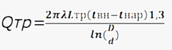 Qтр = 2*3,14*0,05*10*(+5-(-35))*1,3/ln(80/40)=233 Вт