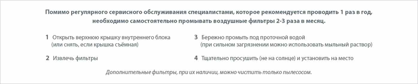 - Противоплесневая обработка- заключается в проветривании внутреннего блока в режиме вентиляции, которое необходимо для «PinUp» естественного конденсата.