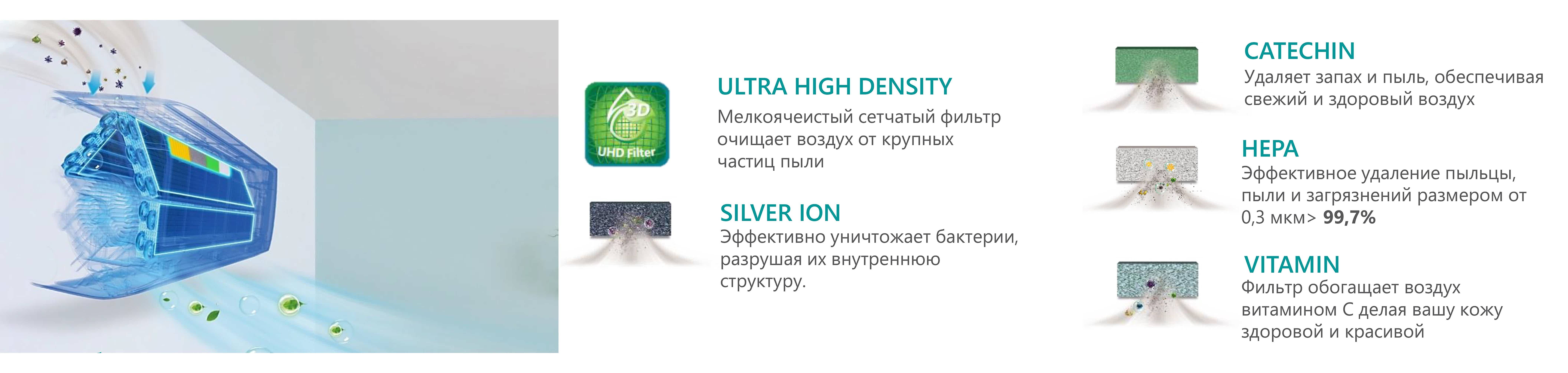 - Комплексная очистка воздухавключает в себя 5 фильтров